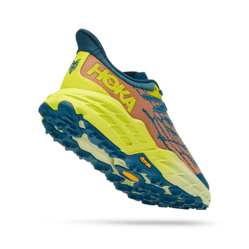 Las Speedgoat, un caballo de batalla diseñado para senderos técnicos, regresan en una versión renovada desde la suela hasta los cordones. Para mejorar el agarre y la potencia de frenado en terrenos sueltos, esta bestia de trail se ha actualizado con Vibram® Megagrip con taco de tracción. La quinta edición de las Speedgoat, 15 gramos más ligera y mucho más adherente, presenta muchas innovaciones para mejorar el rendimiento. La reducción de peso se debe a que cuentan con menos capas superpuestas, lo que logra también una construcción más sostenible.